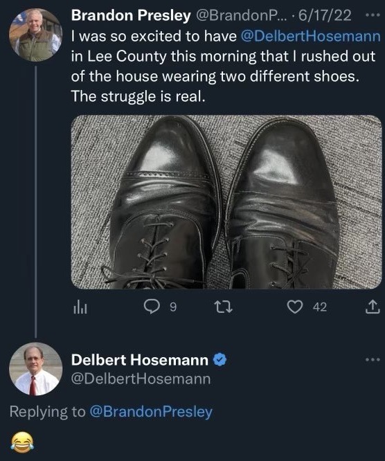 Earlier this year Presley sent this tweet, to which Hosemann responded with a playful chuckle: