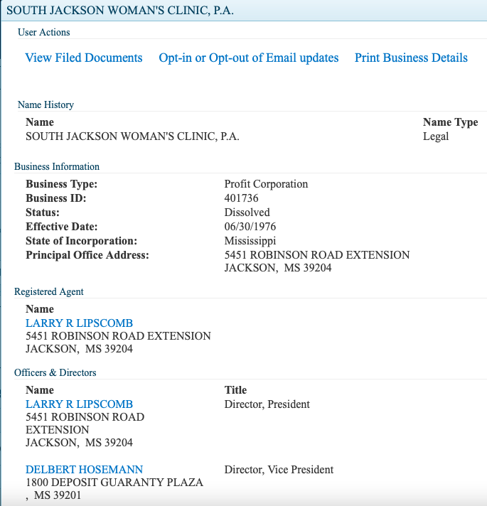 And the Hosemann camp knows that he is very vulnerable on this issue, so they are already lining up excuses and talking points to defend their man. They say he was simply the “counsel” for the clinic, even though the above document clearly shows otherwise. They say the clinic in question did not offer abortions while Delbert was there, even though Fowler’s article above clearly lists it as an abortion provider when it opened in 1976. Abortions, they say, were performed there only after Hosemann left. But we know that Hosemann remained on the board of the clinic until it closed. It was an abortion clinic, pure and simple. And the Hosemann campaign can produce no documents to refute it.